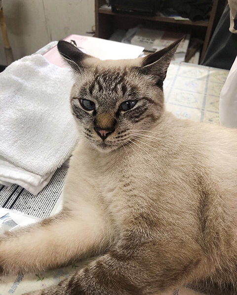 尻尾はシマシマ・ブルーの瞳・去勢手術済み、マイクロチップ装着済み