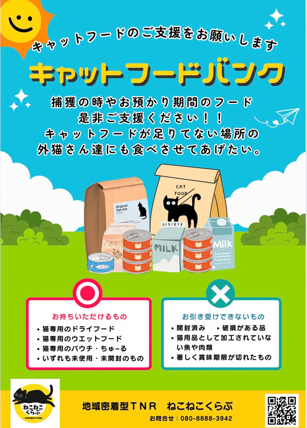 ねこねこくらぶでは現在下記のご支援を必要としています。